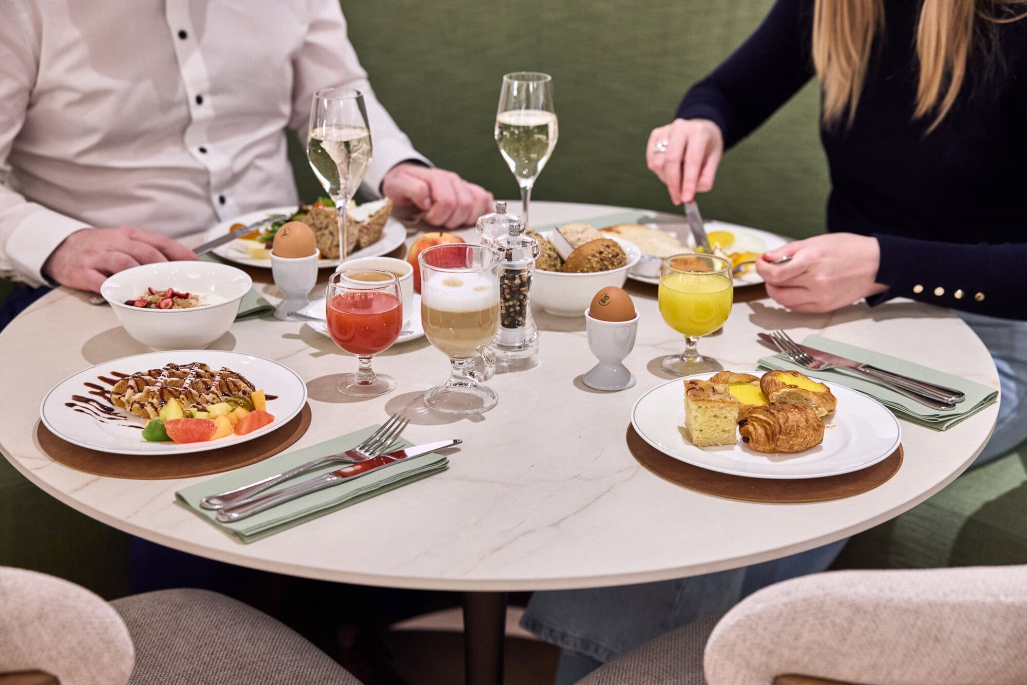 Le buffet petit-déjeuner offre un buffet chaud et froid copieux, de nombreux jus de fruits et d’un large assortiment de spécialités de petit-déjeuner, comme différents assortiments de pains et de viennoiseries salées et sucrées. Dans le restaurant spacieux et convivial, notre équipe dévouée est à votre disposition pour vous choyer, tandis que vous dégustez une vaste sélection de spécialités de café — de l’espresso et l’americano au latte, cappuccino et décaféiné — ou un riche chocolat chaud belge.